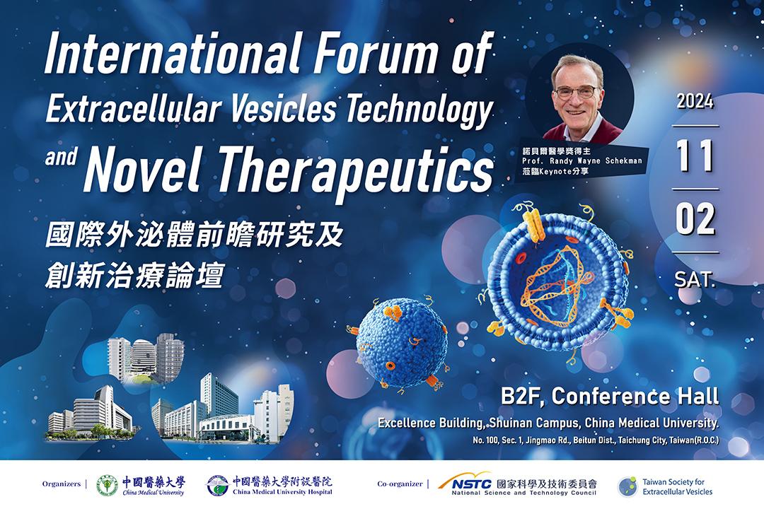 On November 2nd, the Chinese Medicine University and its medical system held the "International Forum on Exosome Prospective Research and Innovative Therapies," and specially invited Nobel Prize laureate in Physiology or Medicine Randy Schekman to Taiwan to discuss exosome research. This will not only promote the integration of Taiwan's related industry-academia-research achievements with international standards, but also broaden the application of exosome technology in the biomedical field, ushering in a new era of medicine.